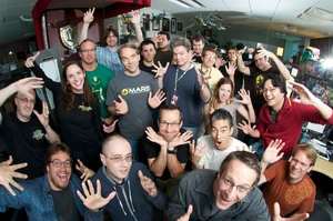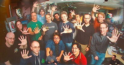 For most of the game's original development, the team comprised only 15 "hard-core ninjas",[2] [4] [5] [6] but by the game's mid-beta in November 2013 had begun to grow. The next few months saw the recruitment of several additional members,[7] and the team has continued to grow since then.[8] As of June 2015 the team numbered 44 members;[9] by January 2016 this had grown to "about 50 people".[10] As of September 2016 there are "70+" people on the team.[11] [12] [1] After roughly doubling in size each year since the game's launch, Ben Brode stated in January 2017 that he expects the team to continue to grow, becoming "significantly larger" over the next couple of years.[1]