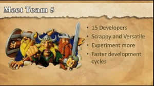 Team 5 (also known as Blizzard Team 5) is the Blizzard Entertainment development team responsible for Hearthstone. Beginning as a "small and nimble" team of 15 members for much of the game's original development, the team has since grown to more than 70 members.[1] Created specifically in order to develop Hearthstone,[2] Team 5 is responsible for all ongoing game design.[3]
